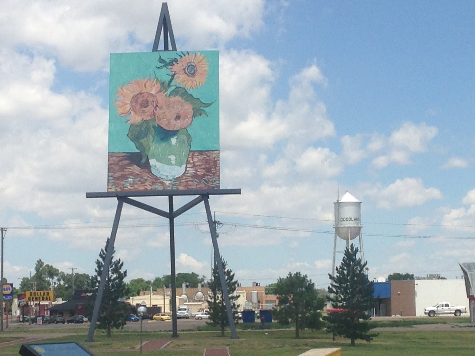 After that painfully long day getting into Oakley, I took it easy, once again heading west. Headwind conditions continued but with a lesser velocity ... but three mid-30 mile days brought me some relief. One of the days ended in the small town of Goodland, KS, home of "The Big Easel" pictured above. It is always interesting to see what small towns do to distinguish their town from other small towns .... Greensburg, KS = "Home of the World's Largest Hand-dug Well".